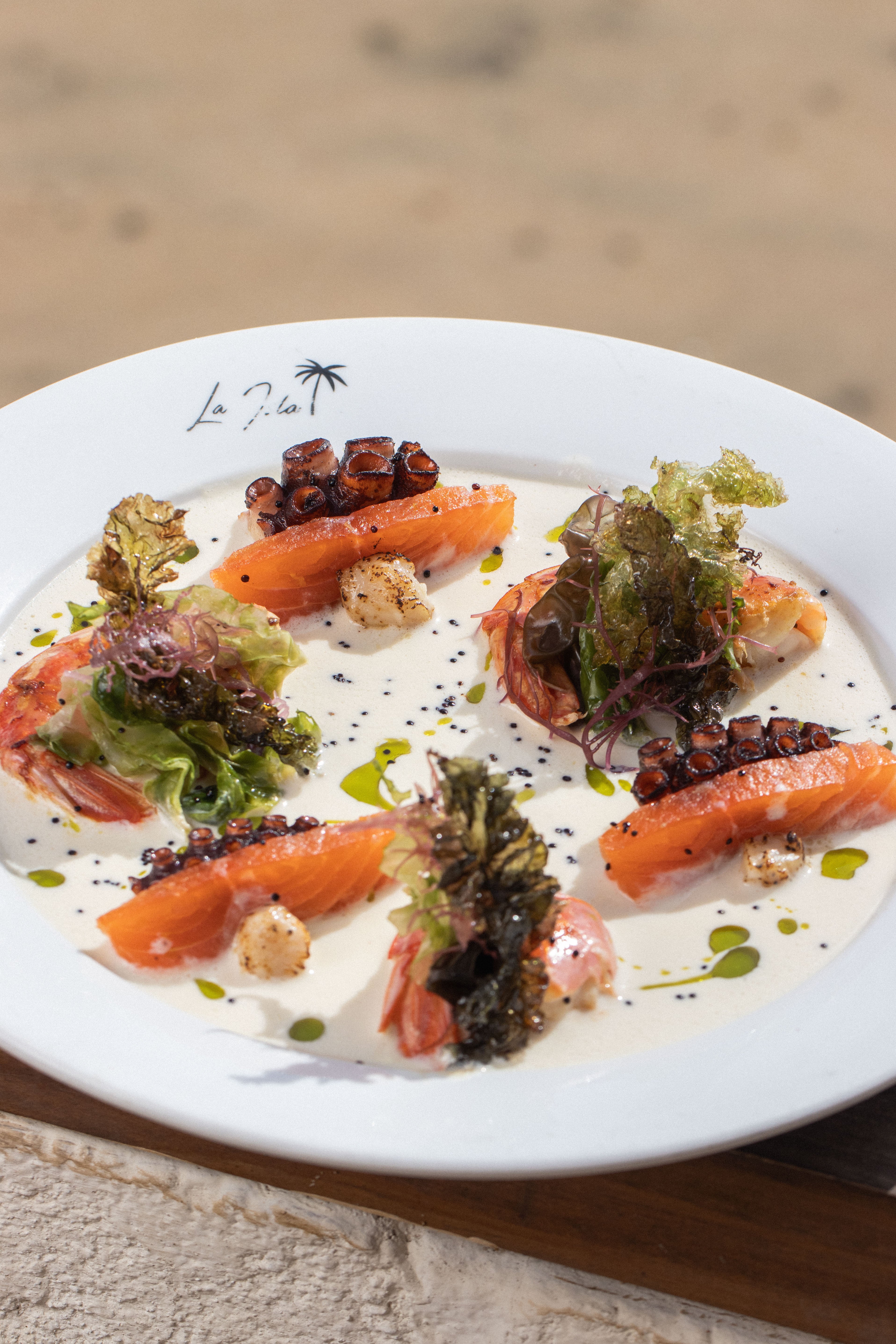 Nuestra cocina mediterránea se disfruta en diferentes espacios diseñados para cada ocasión: relájate en nuestra playa frente al mar, disfruta de una vista panorámica desde nuestra terraza, o vive la magia de nuestro salón principal, a orillas del mar.