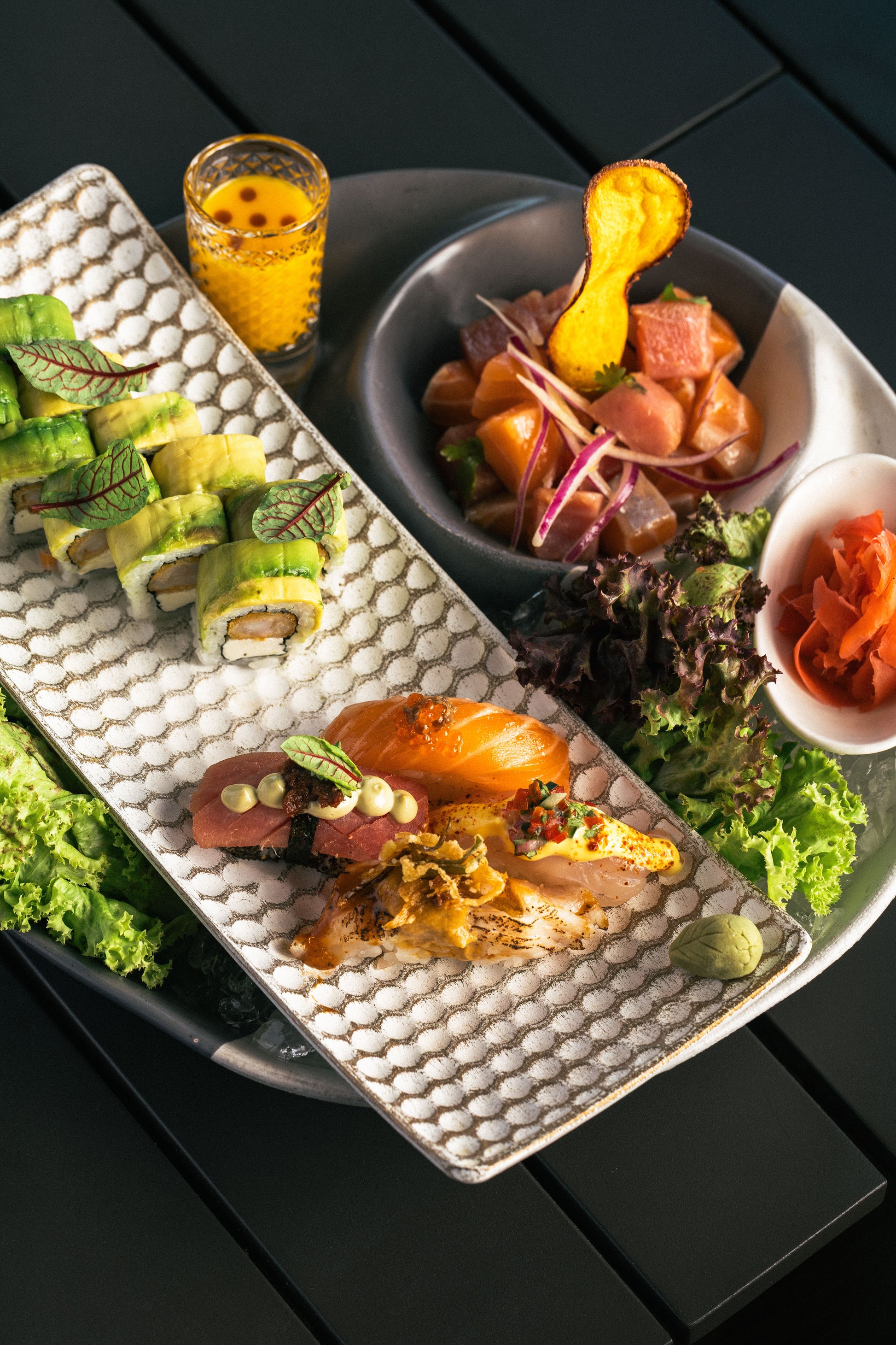 1 maki nikkei, 4 nigiris variados, 1 dúo de ceviche con salmón, atún y palta.