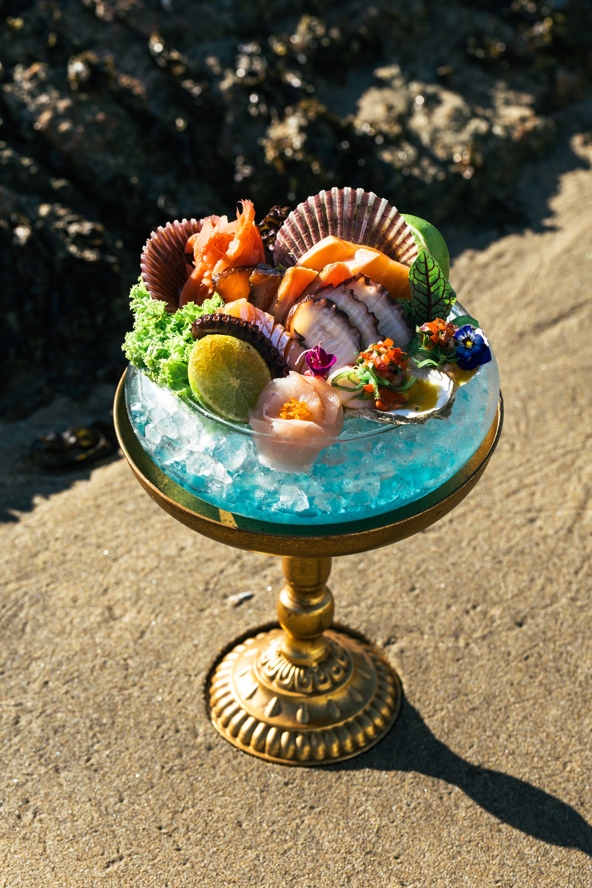 Mix de Sashimis 18 cortes y 2 conchas de ostiones Cortes mixtos de salmón, atún, pescado blanco, frutos de mar servidos en una base de hielo tradicional acompañado de wasabi y gengibre.